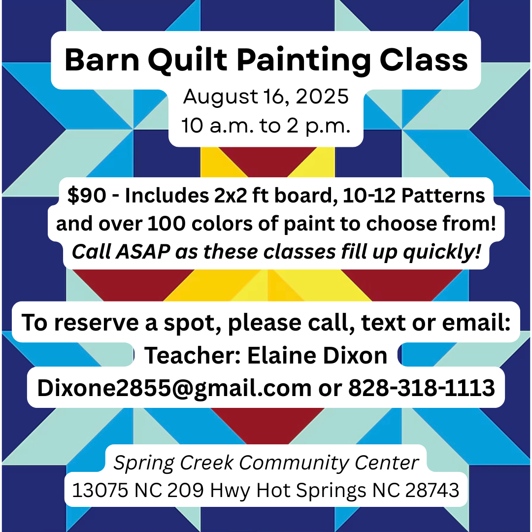 To register for the class and reserve your seat, contact Elaine Dixon at dixone2855@gmail.com or (828) 318-1113.