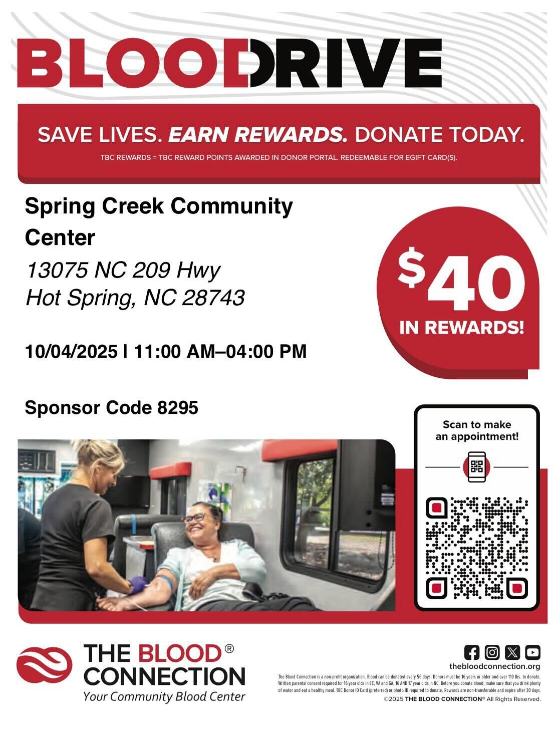 11 am to 4 pm at the Blood Drive van, outside the Spring Creek Community Center.