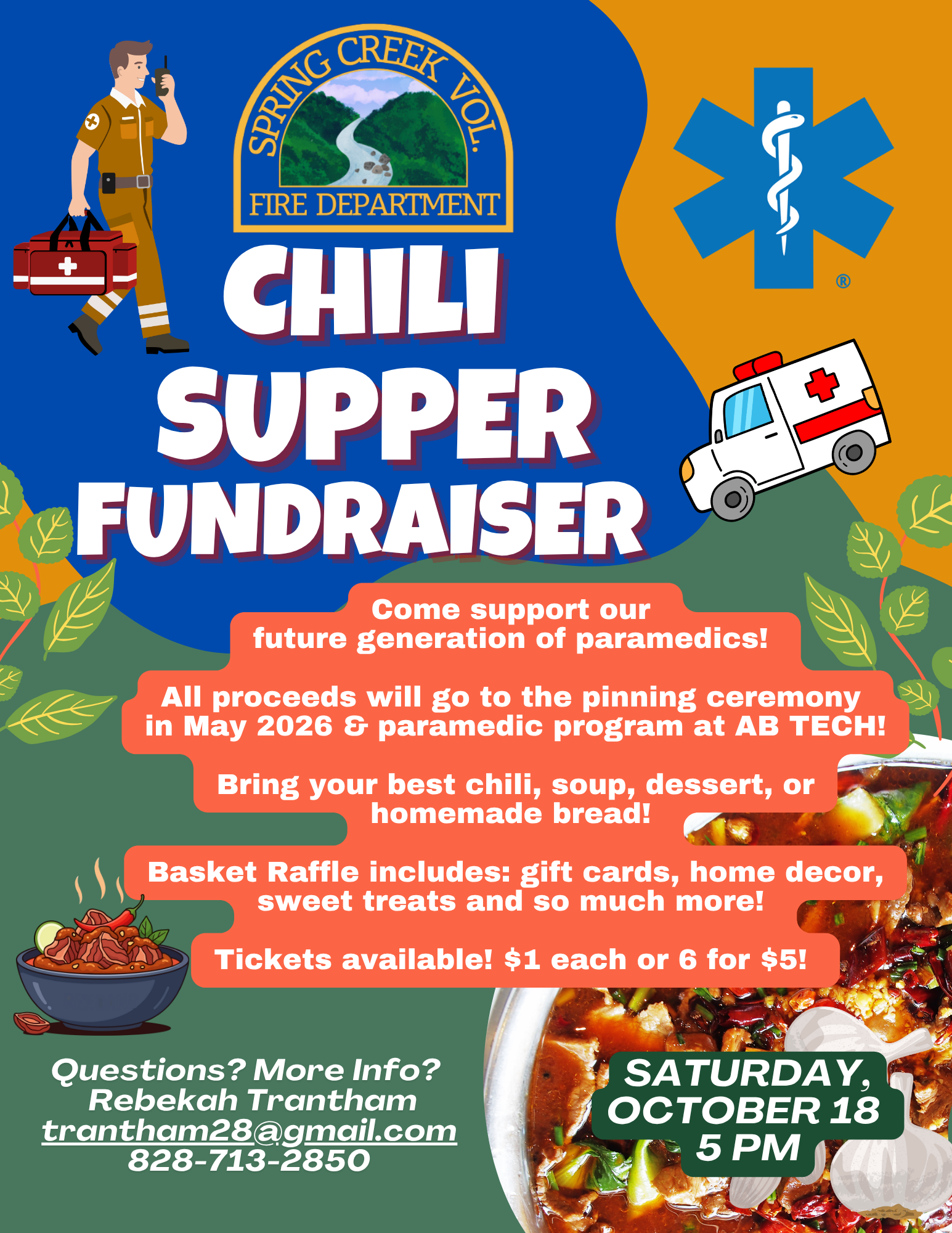 Chili supper and fundraiser at the Spring Creek Volunteer Fire Department.